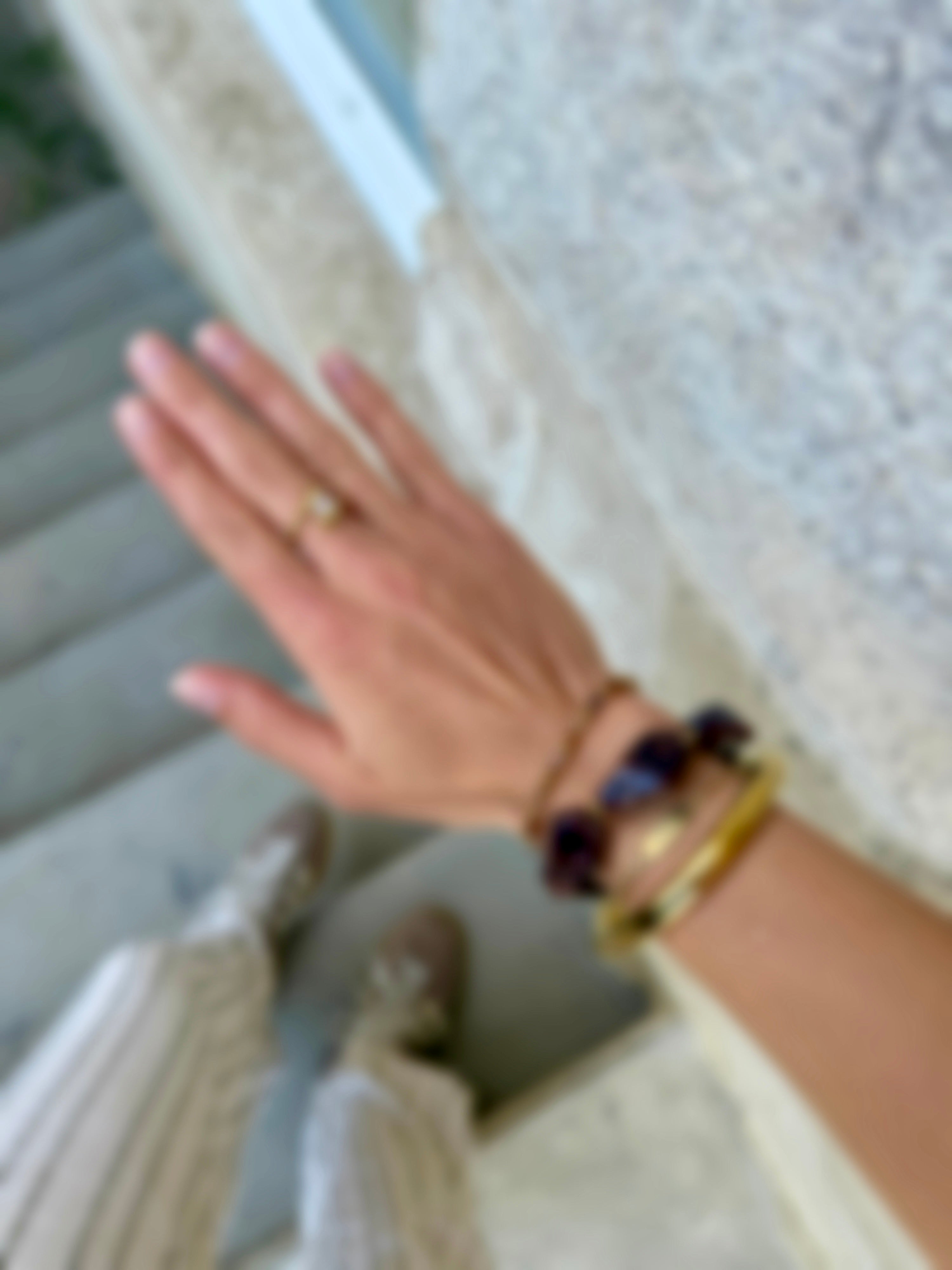 J’ai choisi l’acier inoxydable, parce qu’un bijou doit vivre avec nous : sous le soleil, dans l’eau, au fil du temps, sans jamais perdre son éclat.