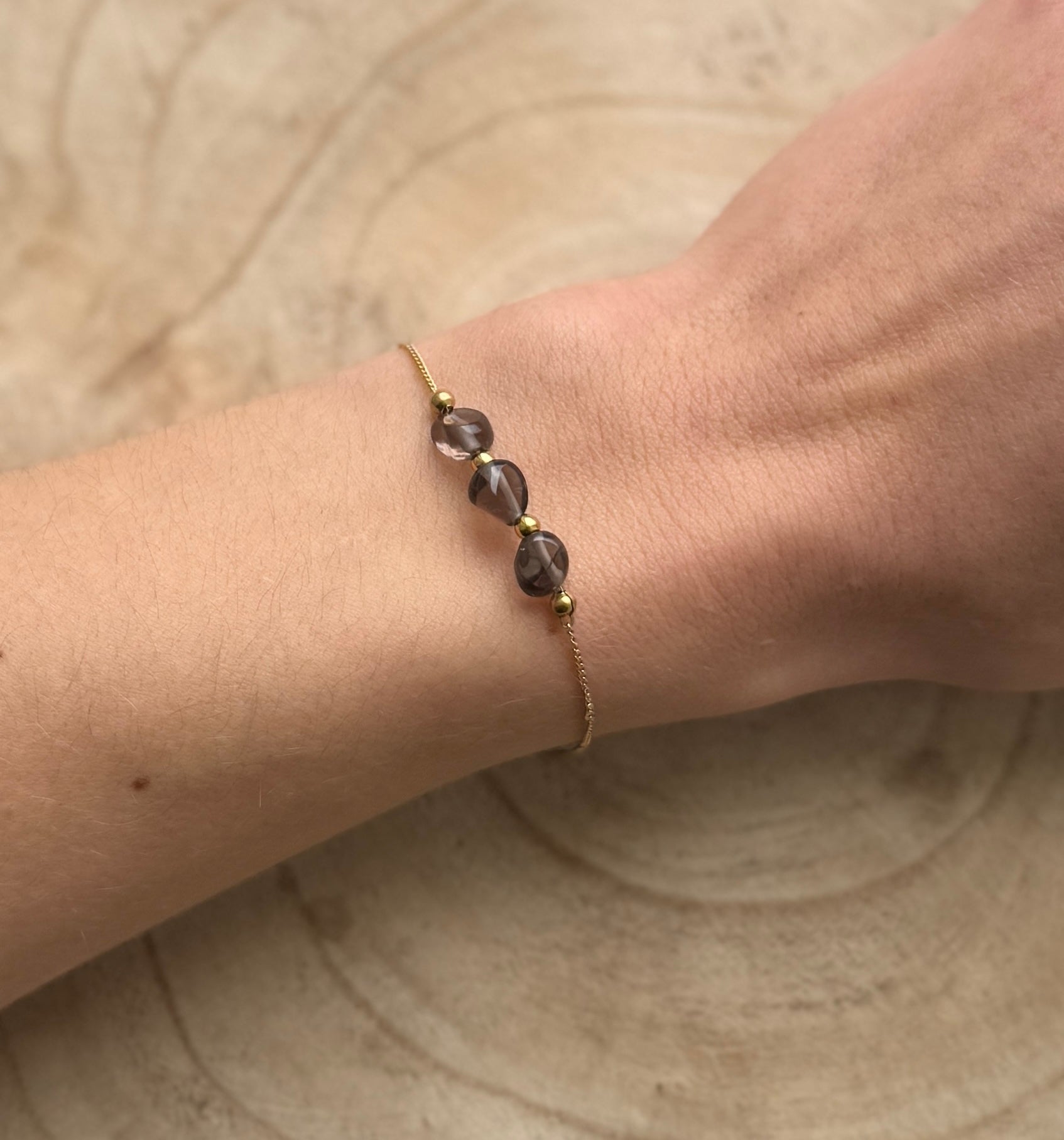 - Bracelet en pierres naturelles ( quartz gris ) et inoxydable.