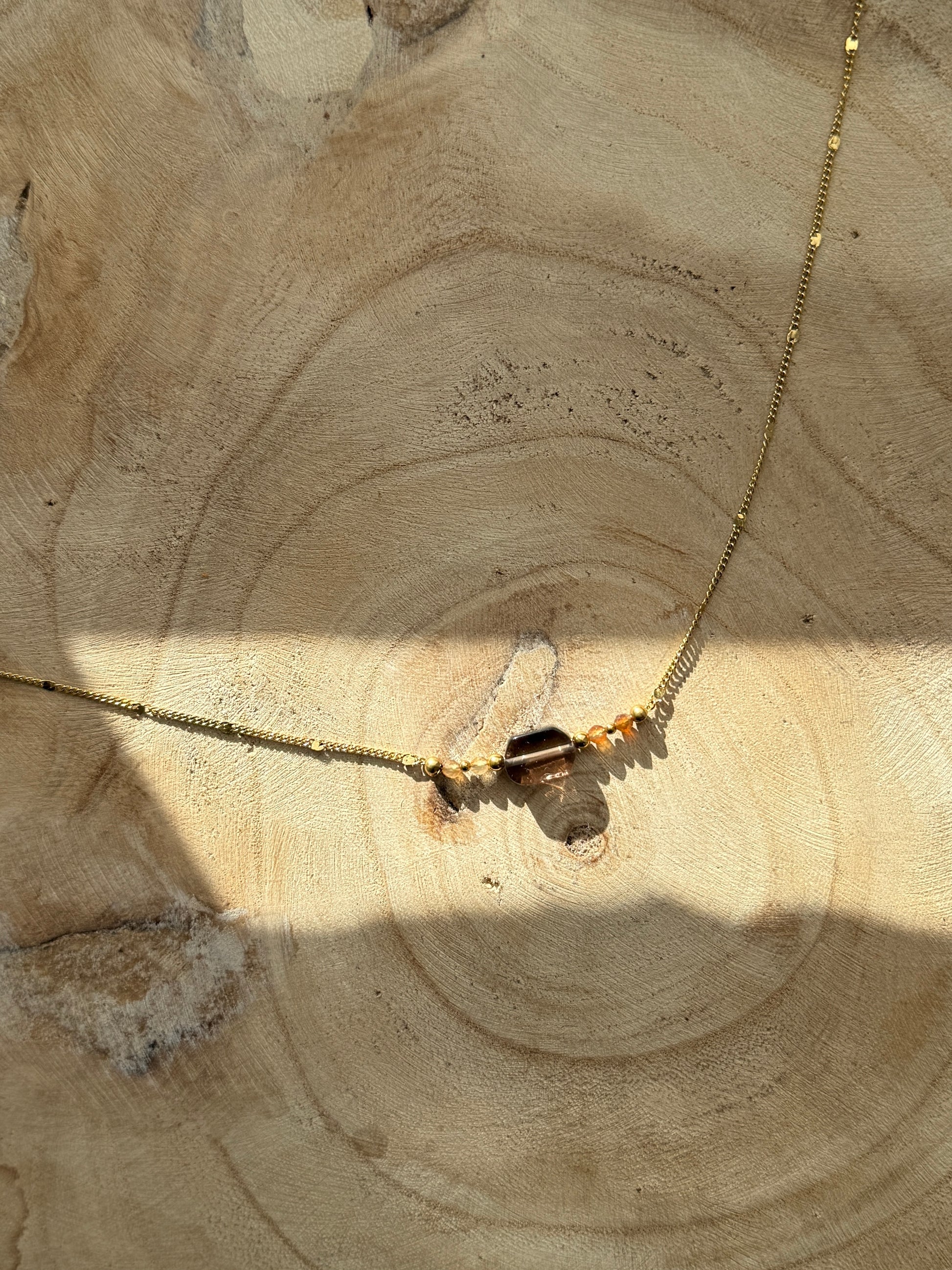 - Collier en acier inoxydable et pierres naturelles ( quartz gris ).